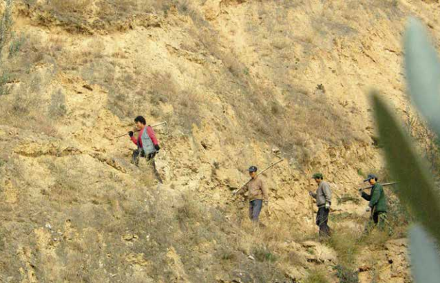 上世紀90年代,李慧(左一)帶領(lǐng)當(dāng)?shù)厝罕娫诟拭C省隴南市武都區(qū)佛堂溝一帶栽種油橄欖。