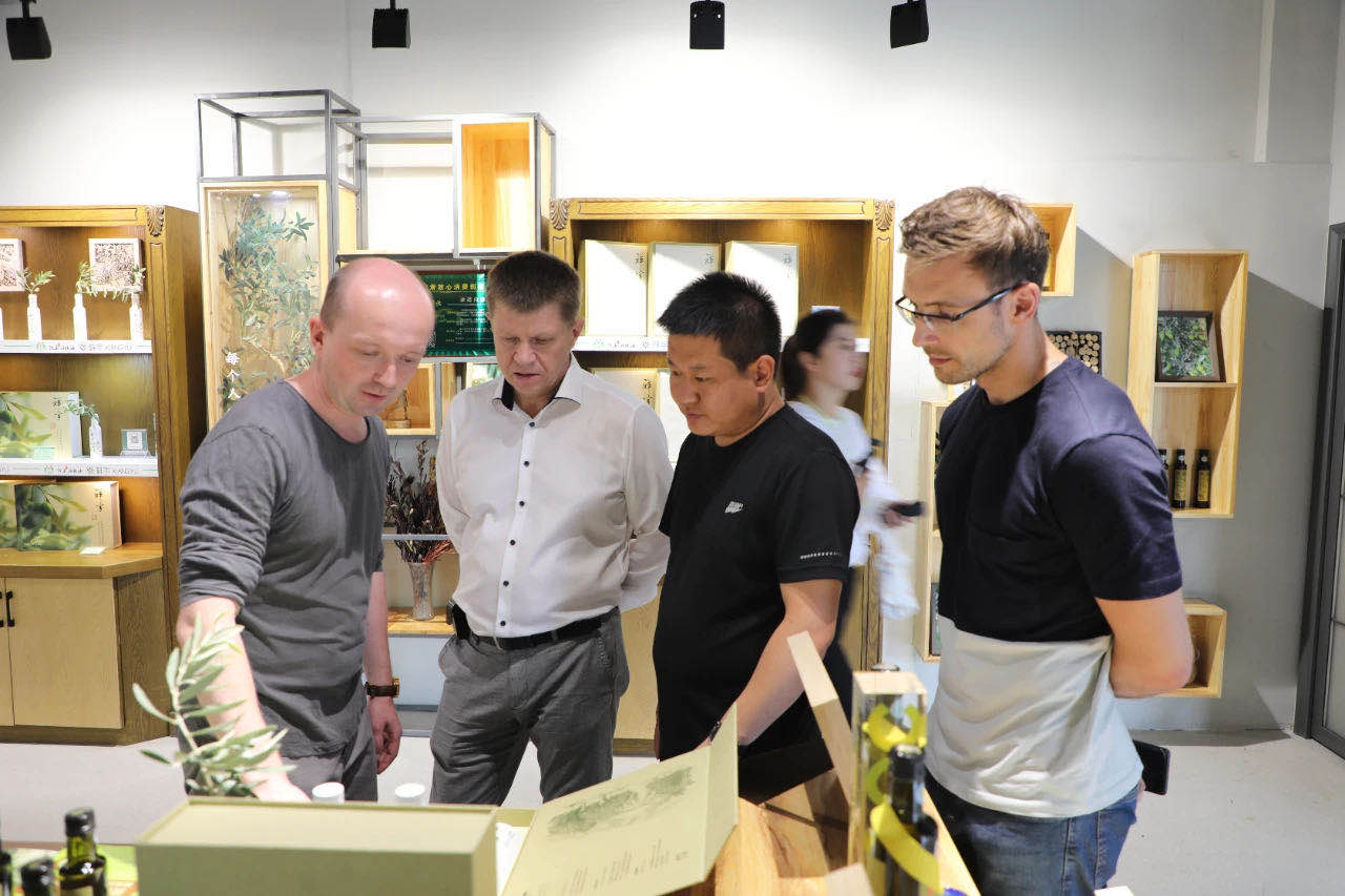 在產(chǎn)品體驗區(qū)李建科總經(jīng)理向各位貴賓介紹了祥宇特級初榨橄欖油、橄欖茶、橄欖菜、橄欖拌飯醬、橄欖保健品、文創(chuàng)產(chǎn)品等,