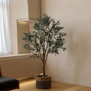 單調(diào)背景墻,放一盆油橄欖,